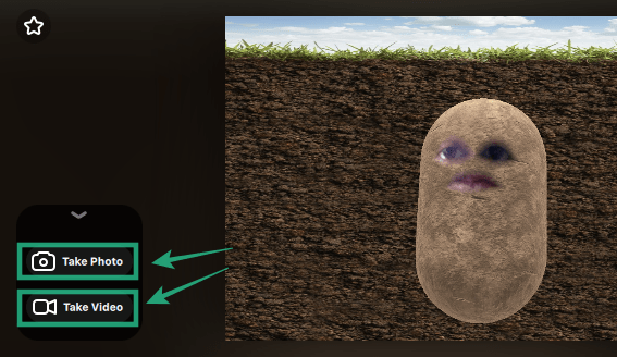 Step 3 (optional): You can either click a picture or a video of your potato face right from the Snap Camera app by clicking on the Camera icon and selecting ‘Take photo’ or ‘Take Video’ accordingly.