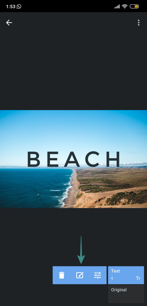 - Navigate to the photo to add a text to and select it.