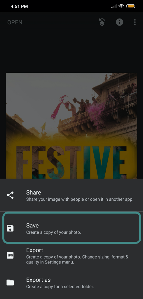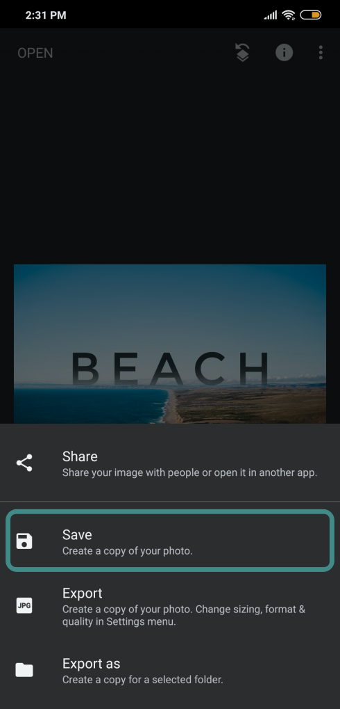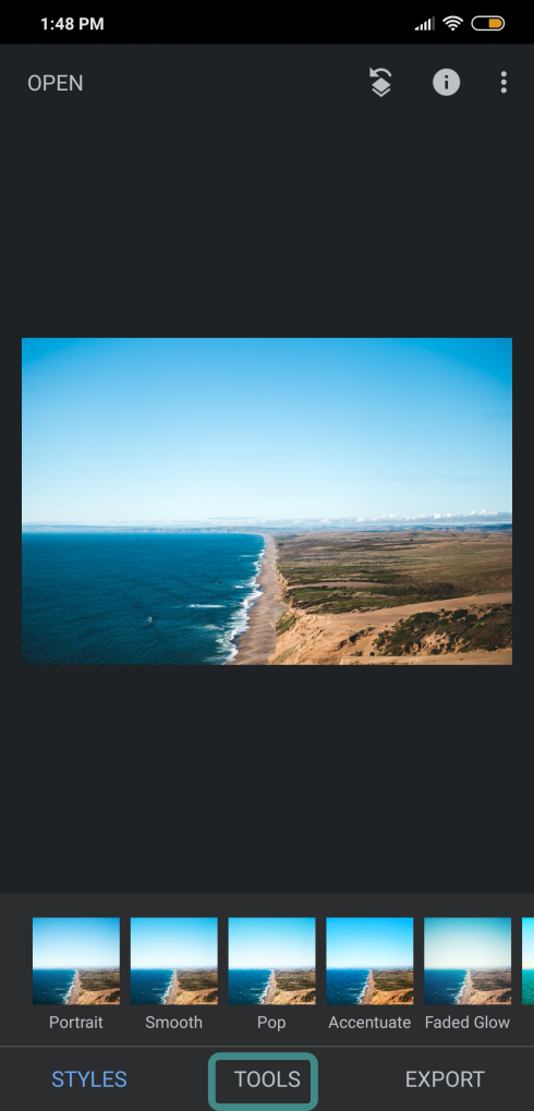 - Open Snapseed on your Android device.