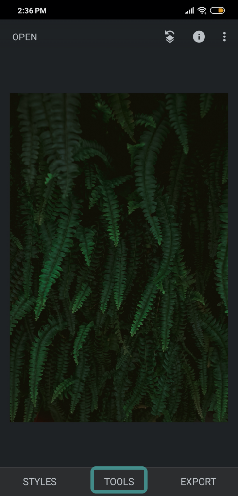 - Once the image is opened, select the Tools tab from the bottom.