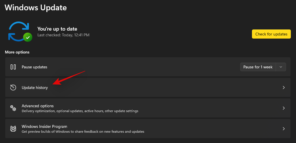 Now click on ‘Update history’.