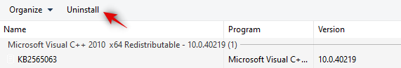 Click on ‘Uninstall’ at the top.