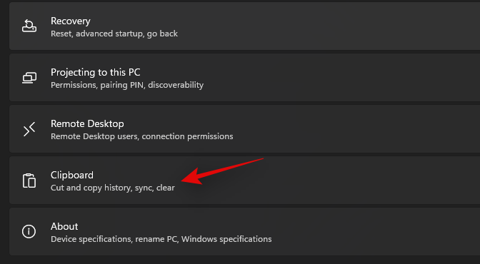 Press Windows + i and click on ‘Clipboard’ on your right.