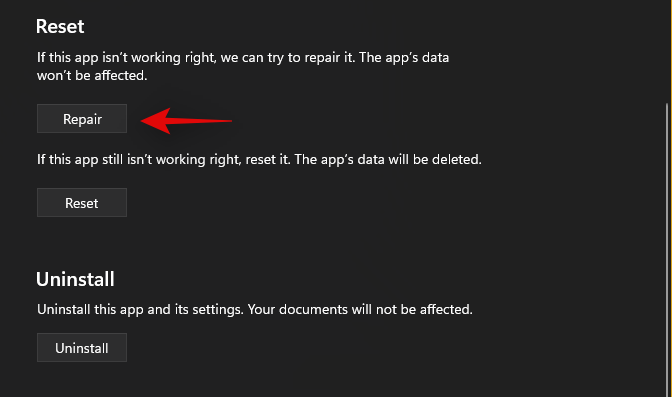Fix 6: Reset and repair the app
