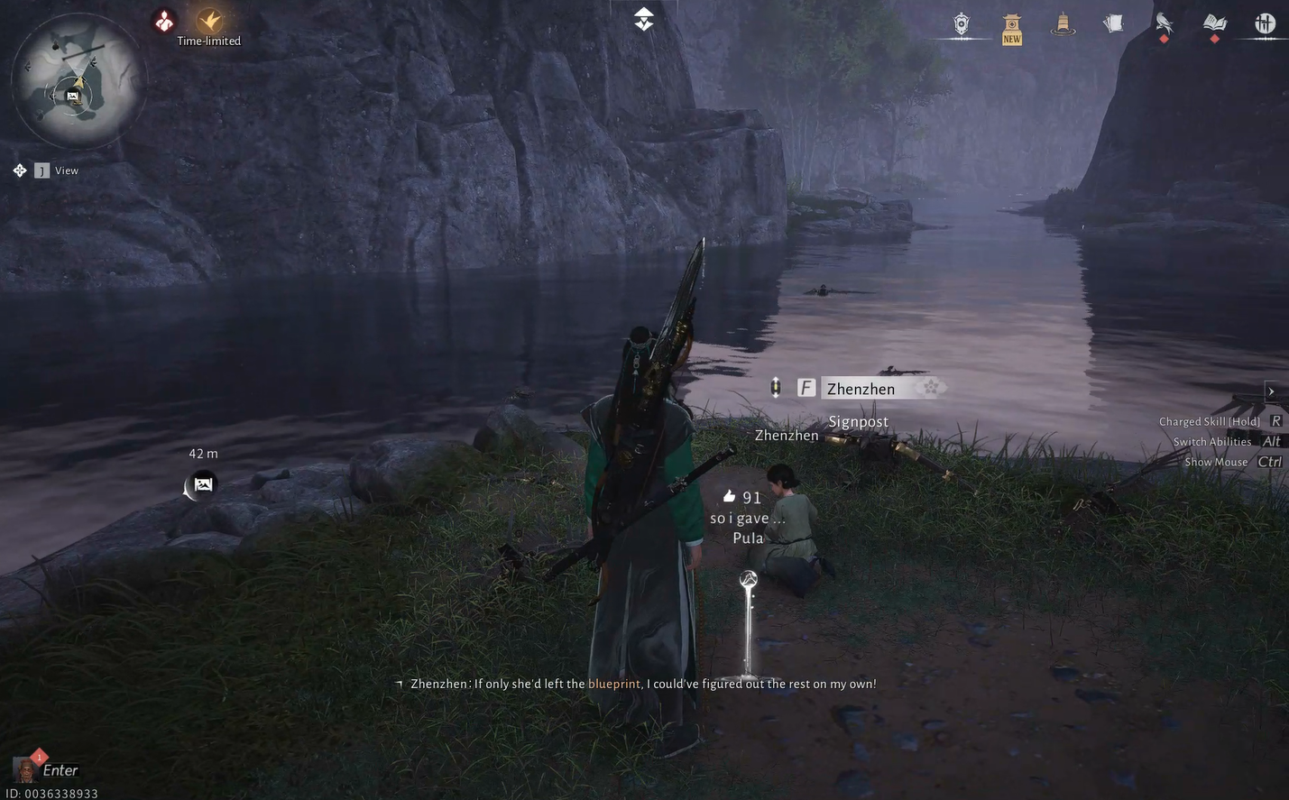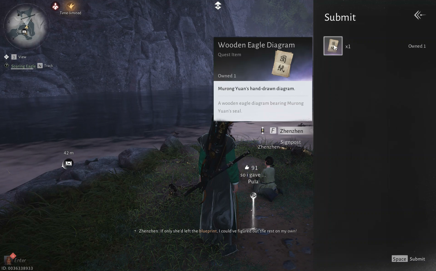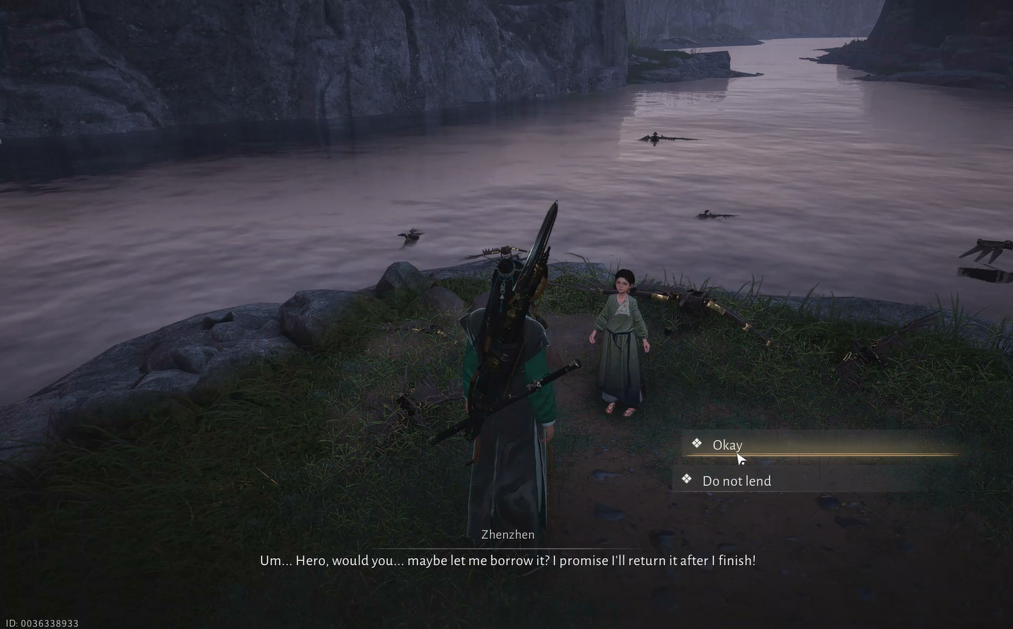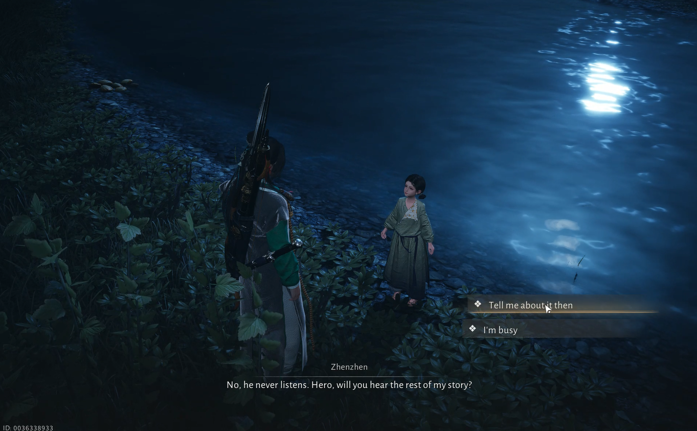 Once a real day has passed, return to Jade Mirror Pond. You will now find a little girl named Zhenzhen near the riverbank. Approach her to begin the Soaring Eagle Encounter Quest.