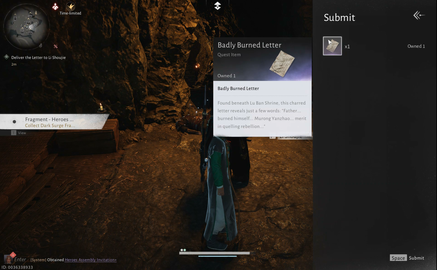 Inside, you discover a letter containing important information about Murong Yuan’s past.