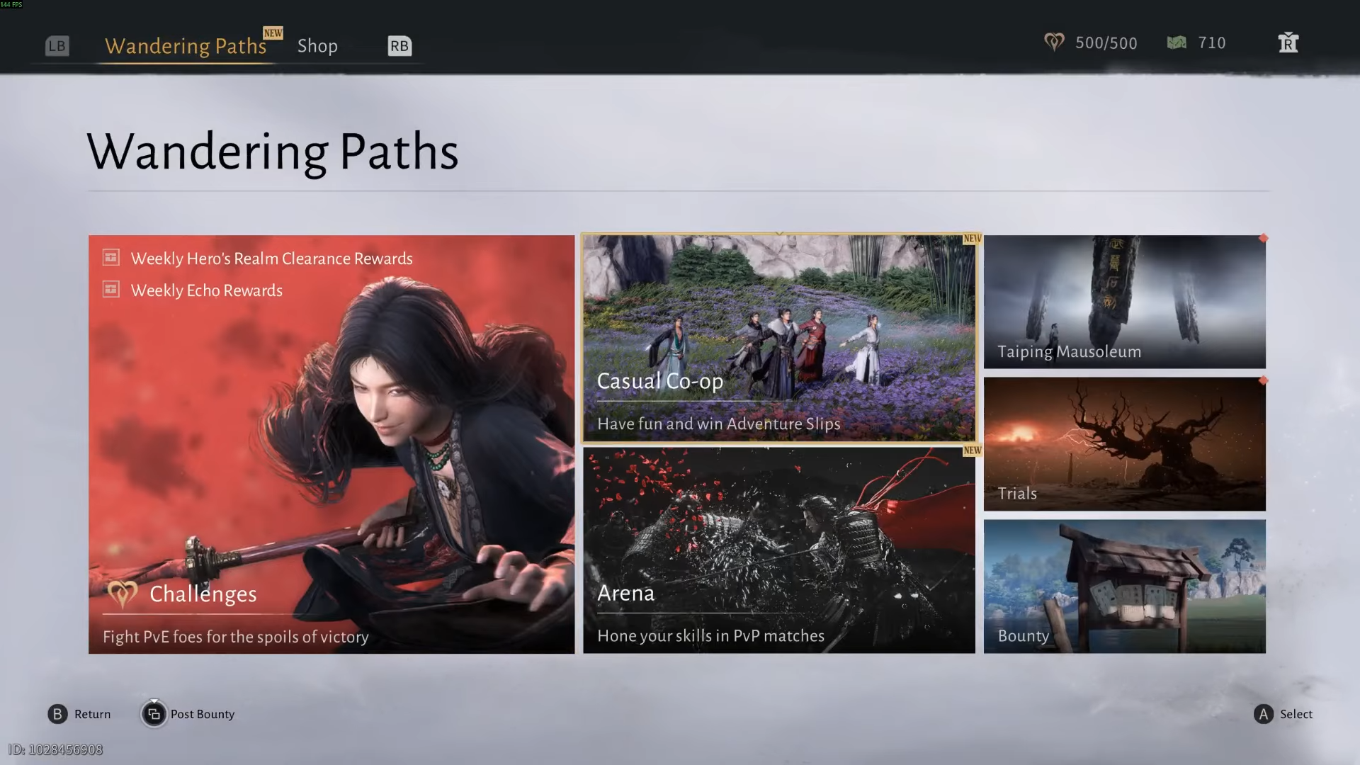 Select the Wandering Paths section from the menu options.