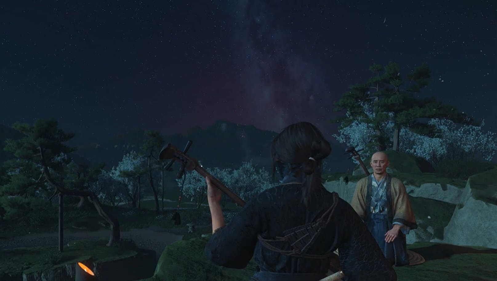 Once you’ve accepted the Master of the Shamisen side quest in the Yotei Grasslands, head to Master Heijiro’s Garden in the northwest. You’ll then be prompted to interact with “golden leaves” that trigger flashback segments.