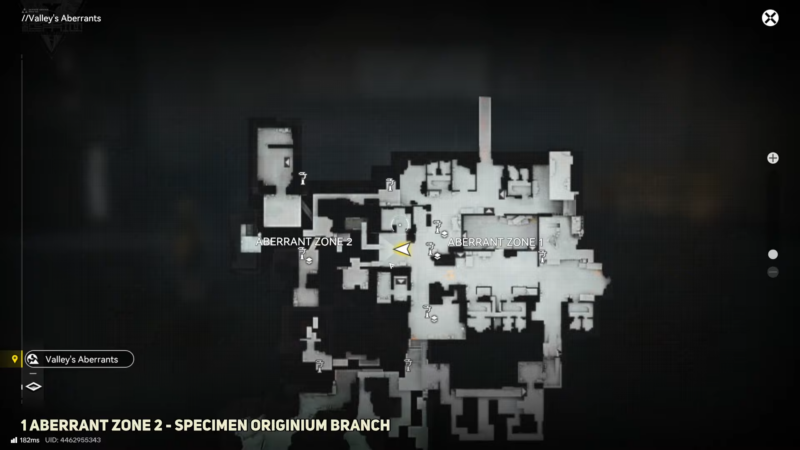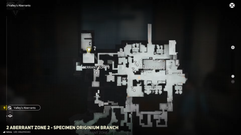 Enter Aberrant Zone 2 and start with the first location route. Follow the path shown for the first segment until reaching the endpoint, then sweep the immediate area for an interaction prompt.