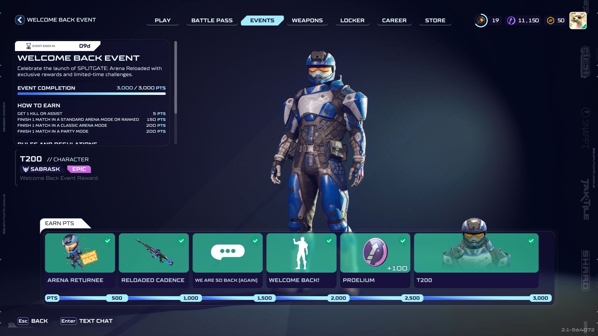 The Welcome Back Event that unlocks the iconic T200 skin through challenges has been extended another week for you to grind.