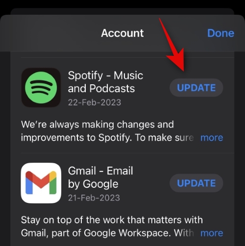 If you’re an iPhone user, head to the App Store > Apple ID image. Now scroll through the available updates list and tap Update beside Spotify if it shows up in the list.
