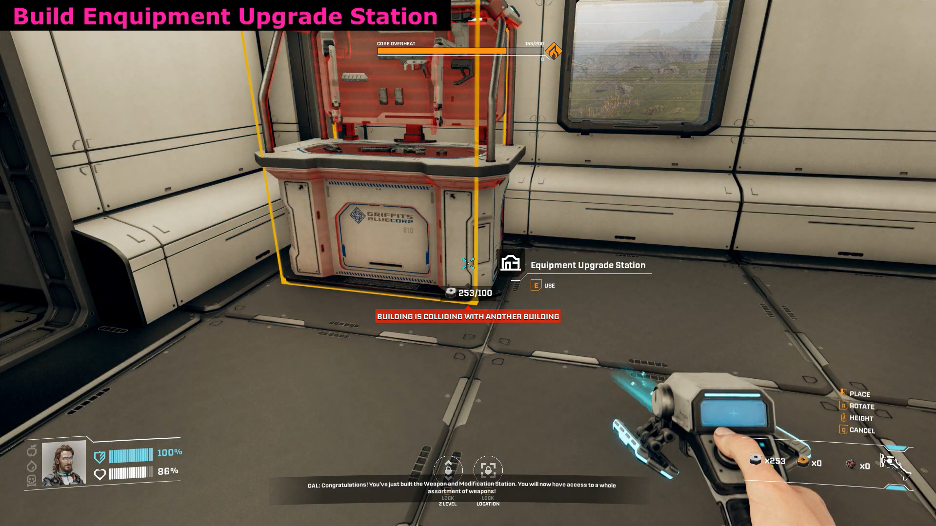 - You must first build the Equipment Upgrade Station on Arcadia to access weapons.