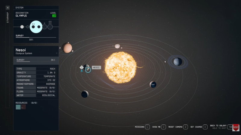 You’ll need to travel to the Olympus system, which sits relatively central on the star map. From there, look for the planet Nesoi, and you’ll find The Almagest orbiting it as a large, easily visible station.