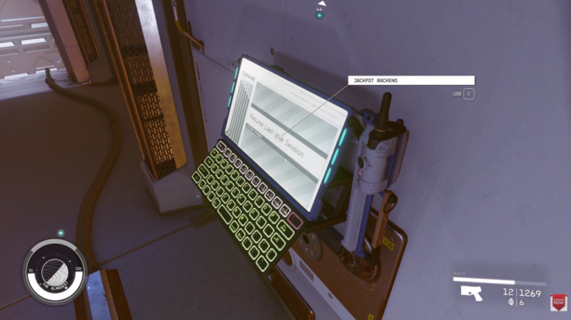 Float through the vent into a concealed room containing the Jackpot Backend terminal.