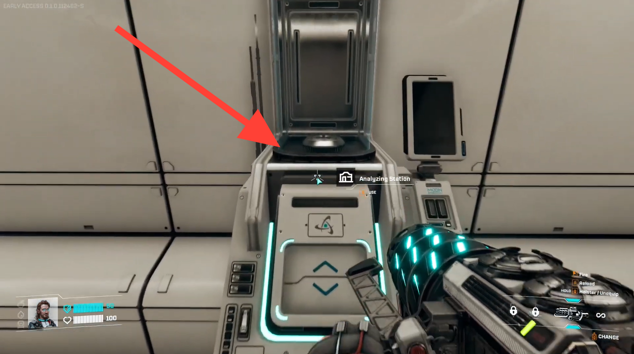 Walk up to the Analyzing Station until the interact prompt appears, then press the interact key to open its interface.