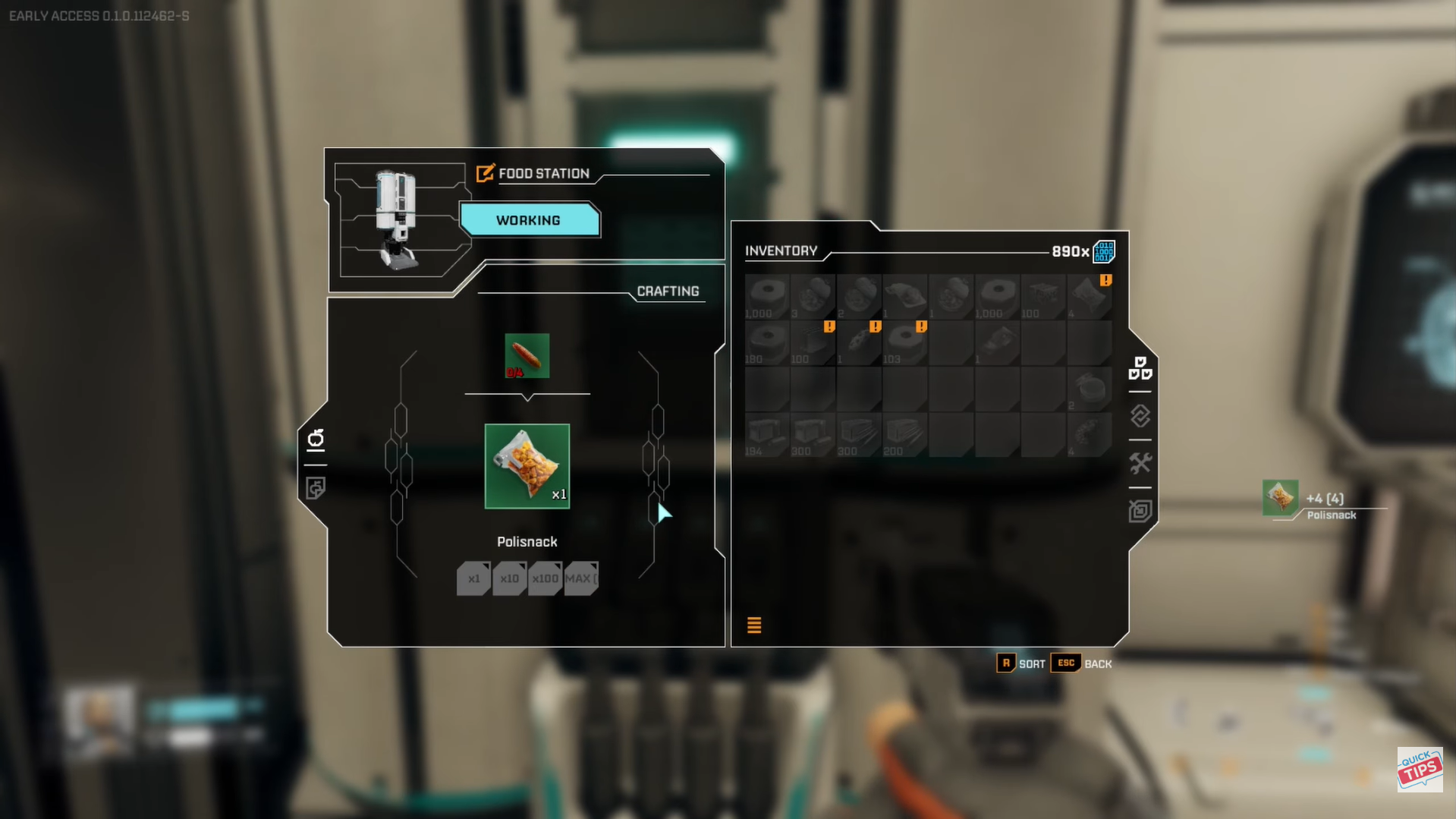 At the start, you don’t have a food station, so rely on what grows nearby. Look for Polifruit shrubs and other edible plants or fungi, which can be eaten raw or stored for later. Harvest as much as possible and keep a small stockpile in your inventory to avoid starving during short trips.