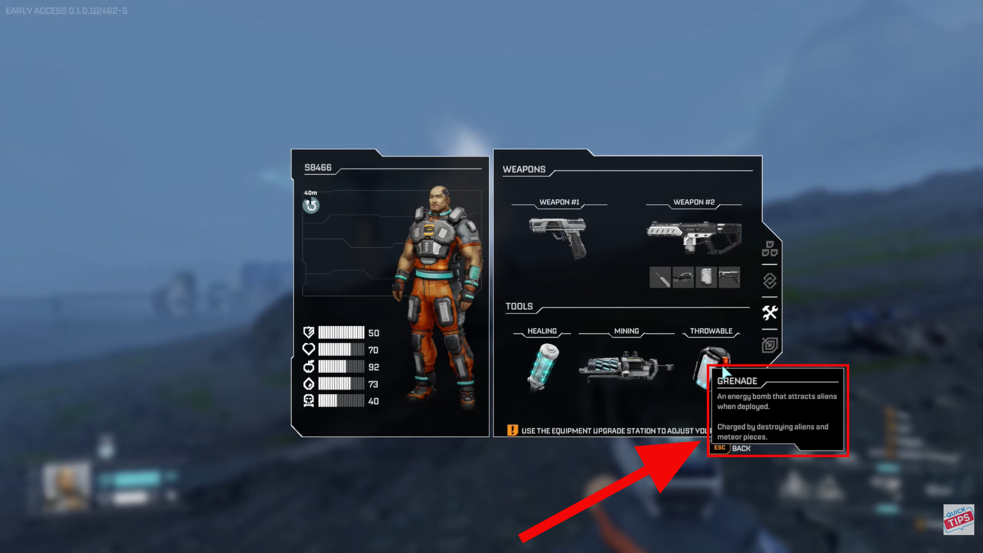 - When starting on a new planet, prioritize clearing nearby alien spawns and harvesting visible meteor fragments to build up essential resources and throwable materials.