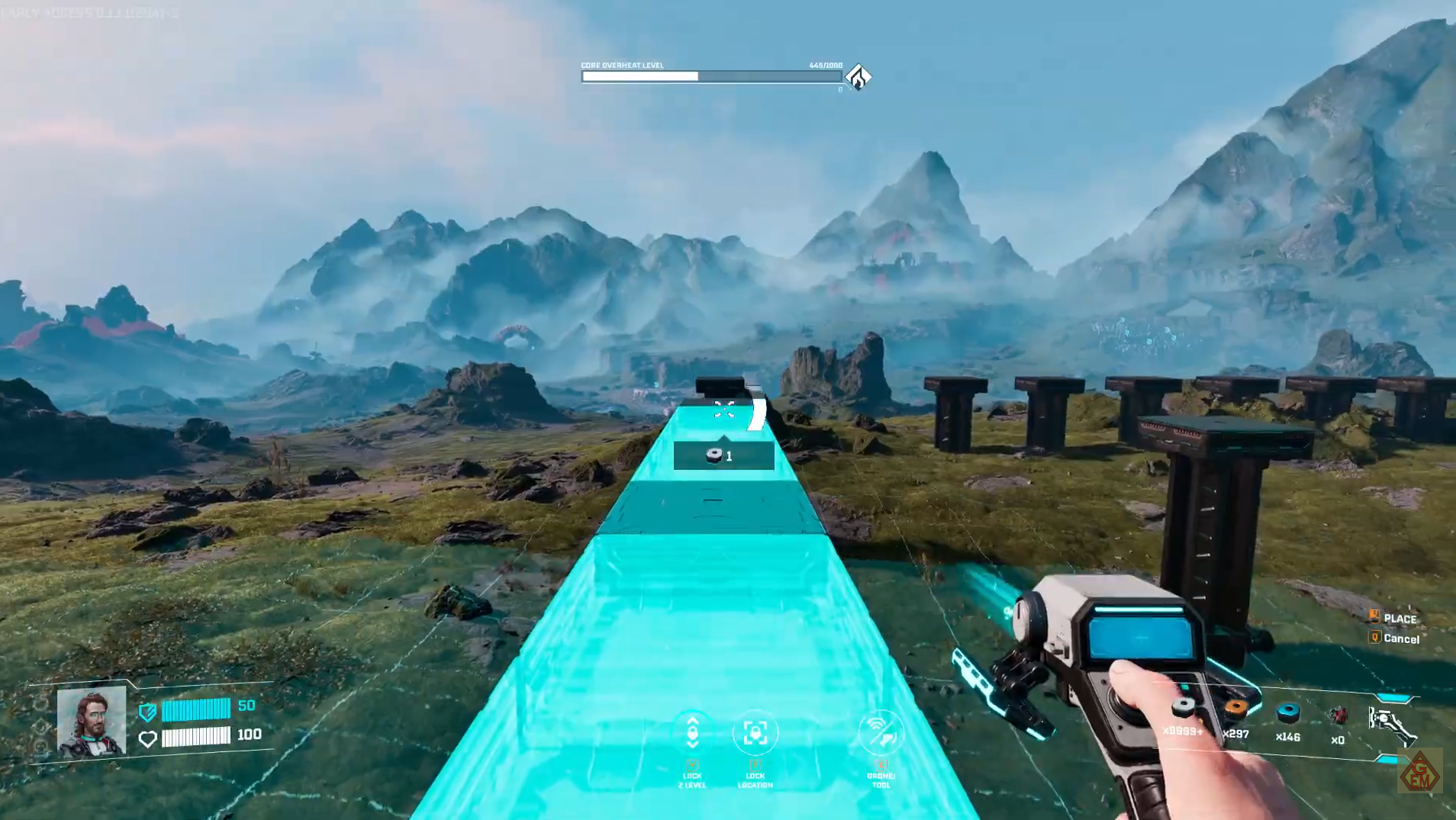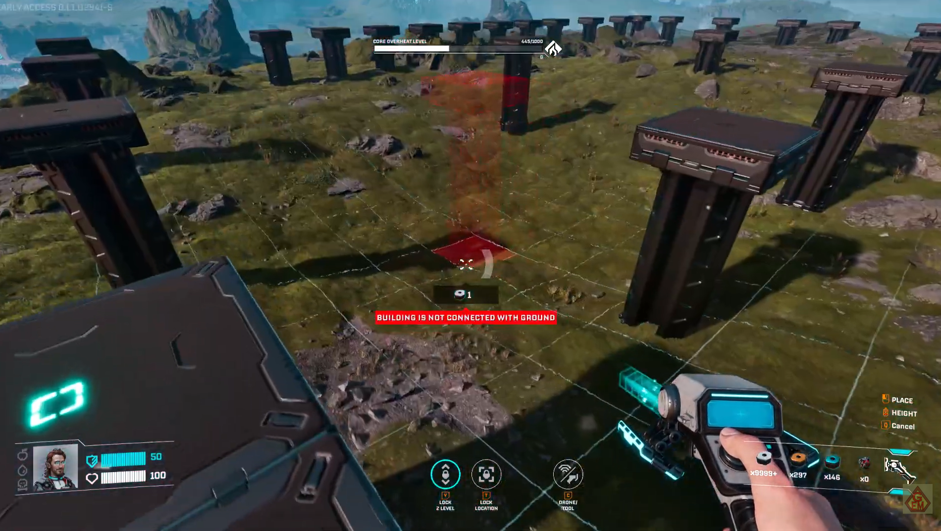 Once drone building is unlocked, switch to drone mode to speed up construction. With the height already locked, quickly place and stretch platforms across large areas, making wide, flat floors much faster to build than manual placement.