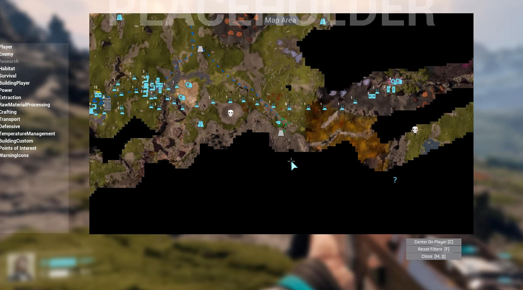 | Survey Radius | ~350 meters; reveals POIs like abandoned bases and ore deposits |