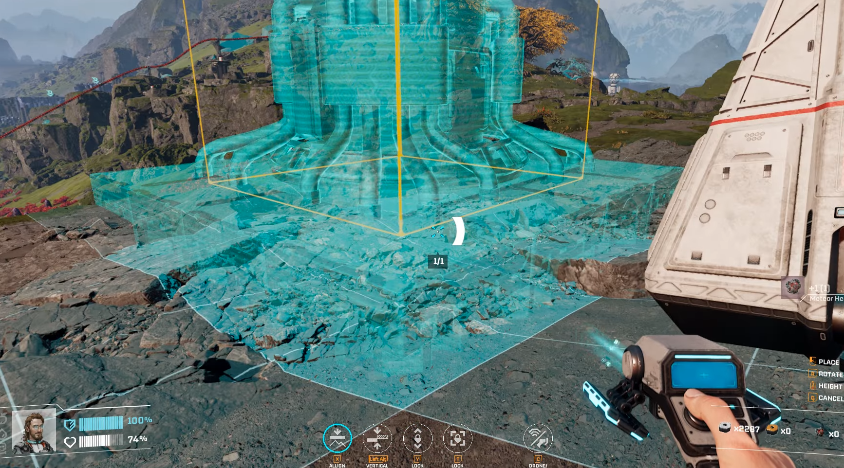Drop a temporary Base Core nearby (carry Meteor Heart and Basic Building Materials always).