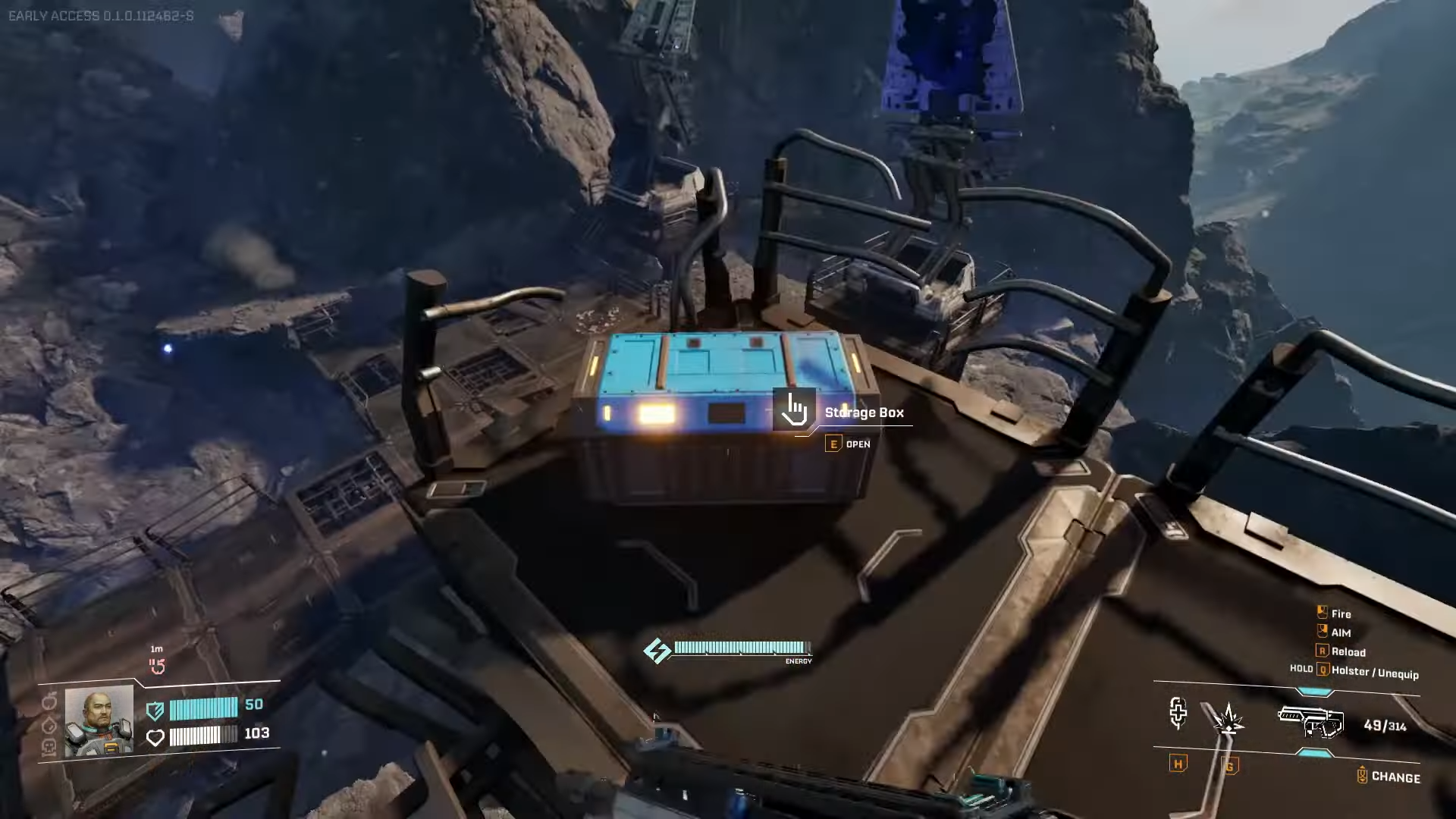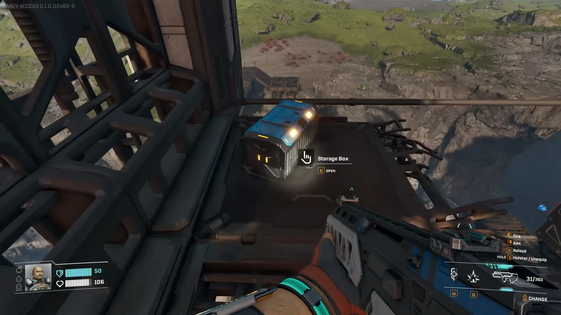 Blue chest sits exposed; grab Stabilizer and exfiltrate quickly.