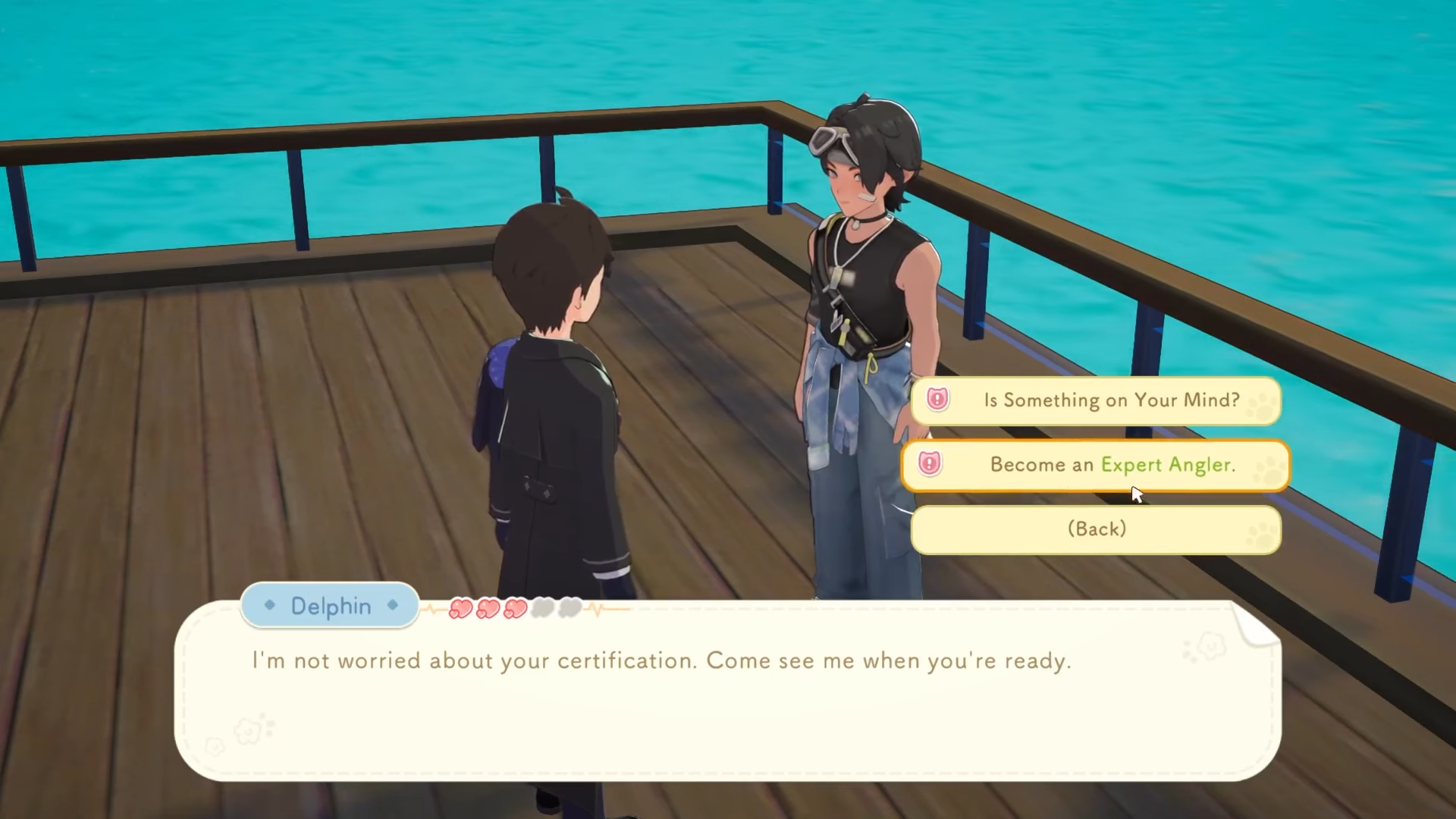 After that, go speak with Delphin to move on to the Expert Angler requirements.