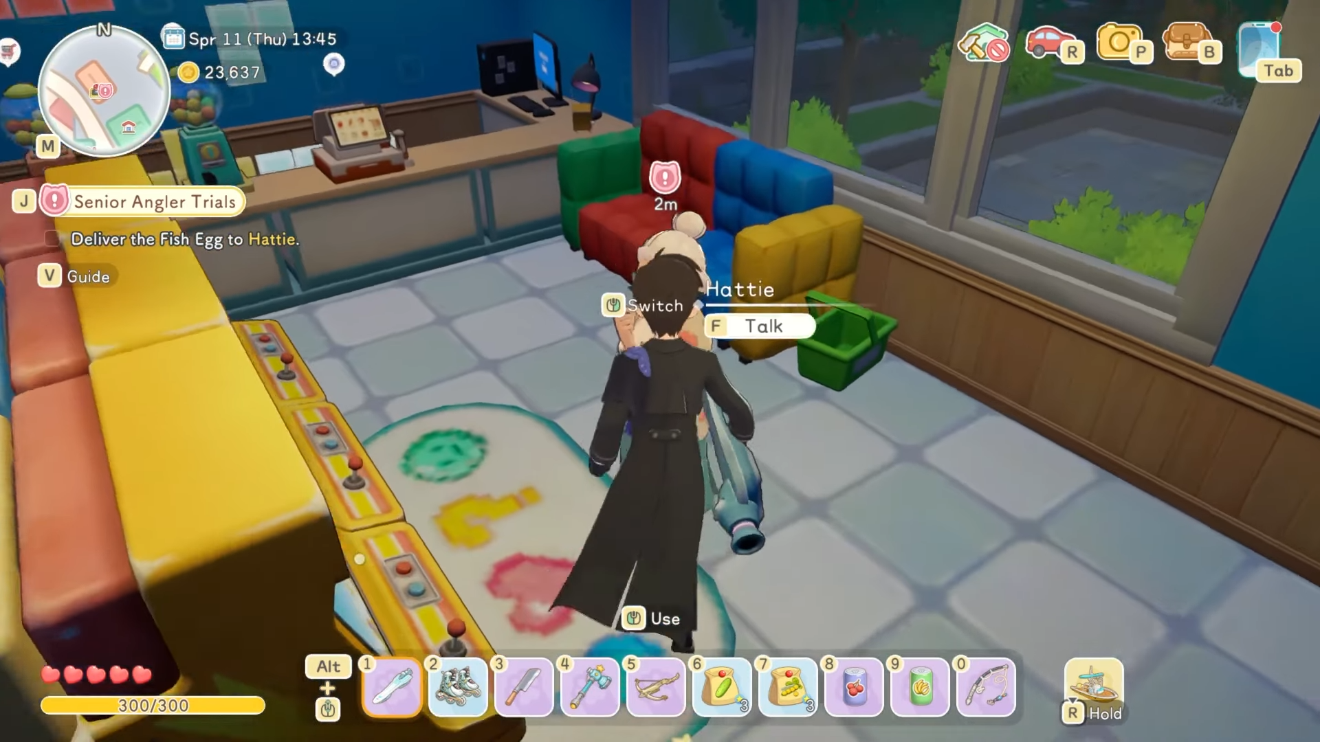 Wait until you get Giant Barb Fish Eggs from the pond, then bring the eggs to Hattie and hand them in.