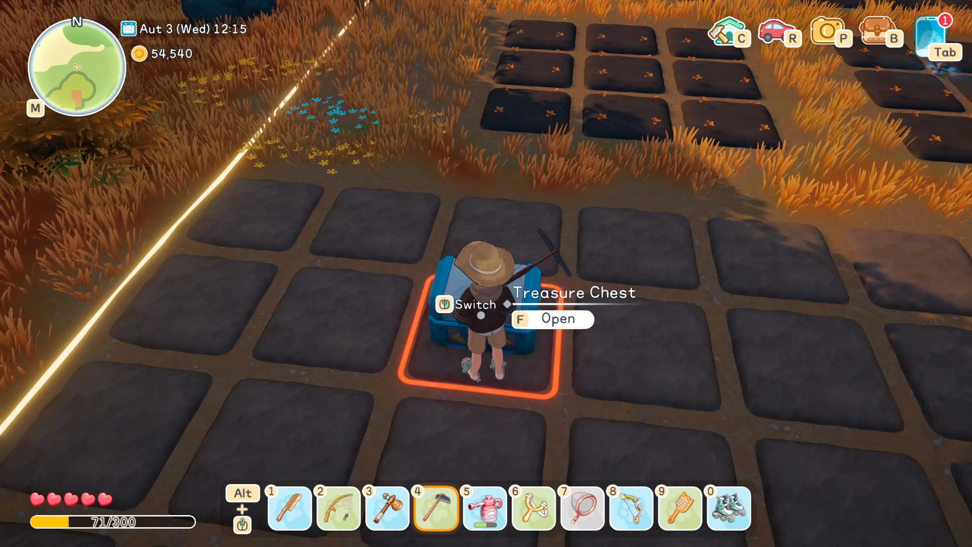 | Strategy | Hoe large areas, open chests immediately, replant desired crops |