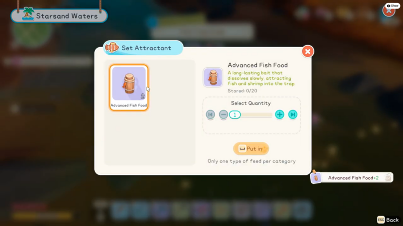 - Traps require Advanced Fish Food to function efficiently.