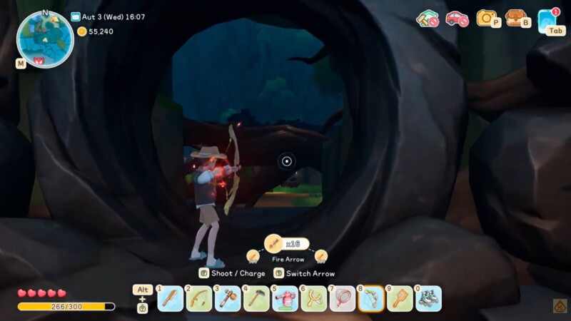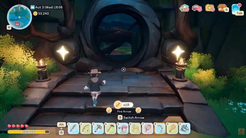 Fire arrows trigger a short burn animation, and after a few successful hits, the entrance clears. This mechanic is part of the broader elemental progression system in Starsand Island. Later areas introduce: