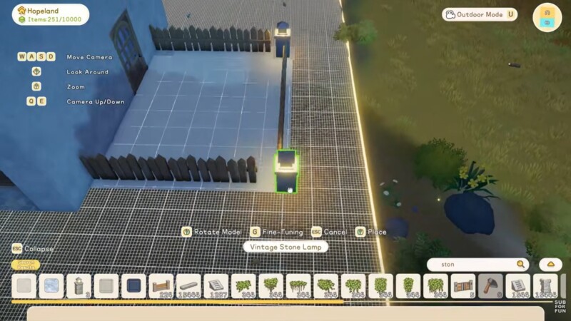 - Creating the outdoor patio with rails and vintage lamps