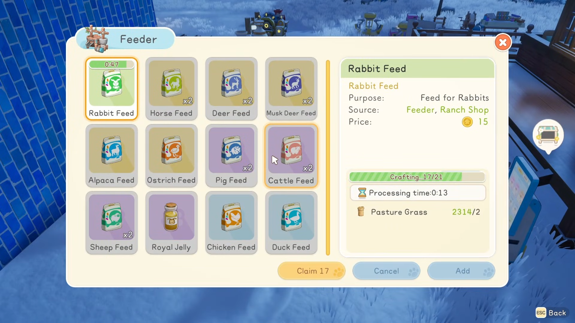 - Collect free animal feed daily from Pastelle’s ranch shop till once you reach apprentice rancher rank.
