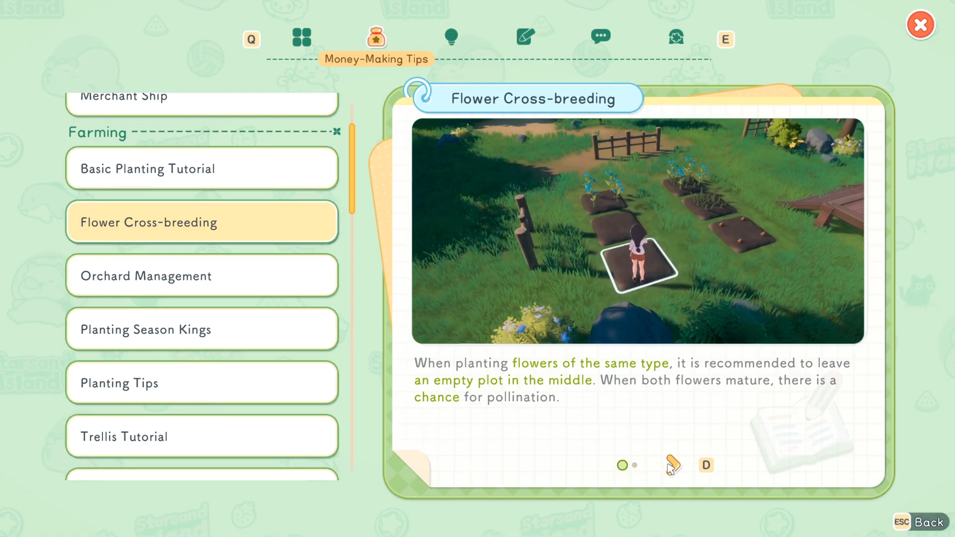 | Key Action | Leave empty plots between same-type flowers |