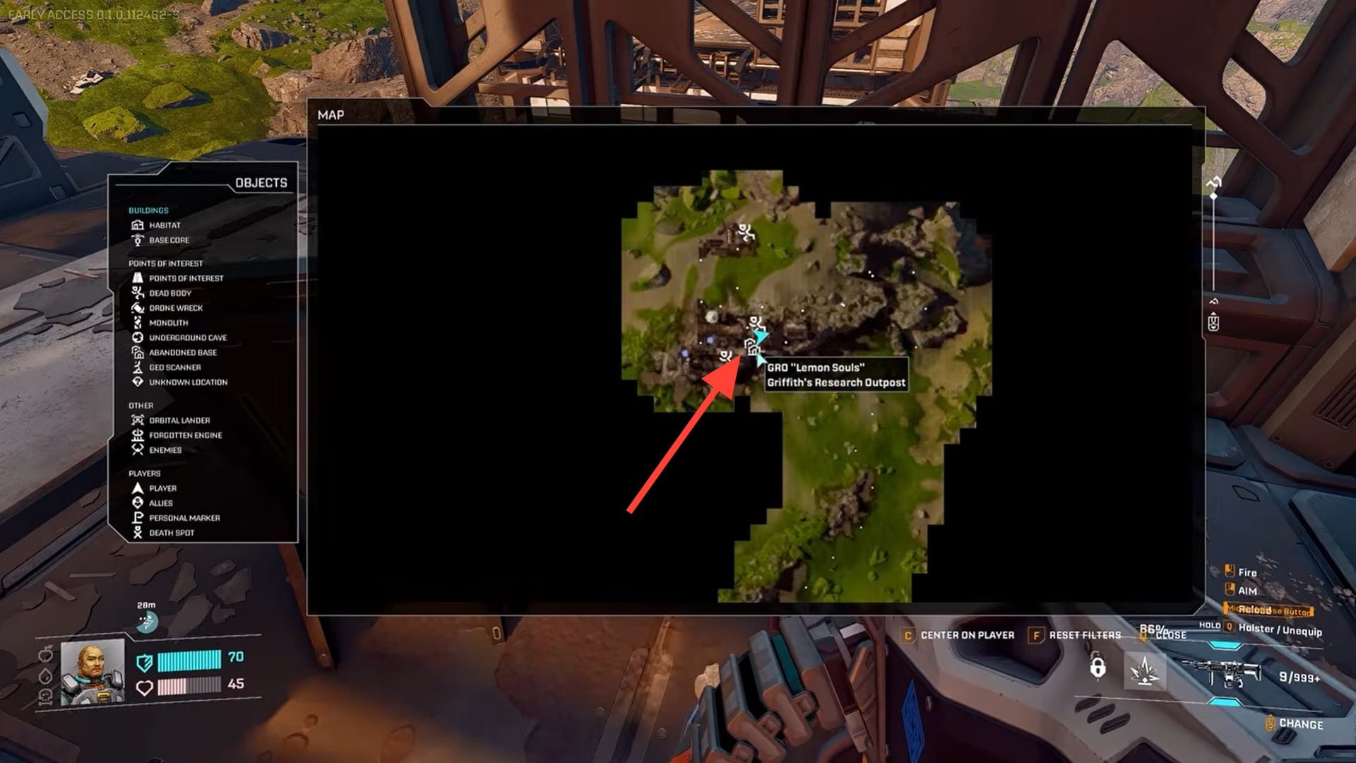 The Griffith Research Outpost is perched on a mountain near the starting zone. You can usually spot it almost immediately after spawning, as it stands out against the surrounding terrain due to its elevated position and research-building layout. The climb is straightforward and does not require special gear.