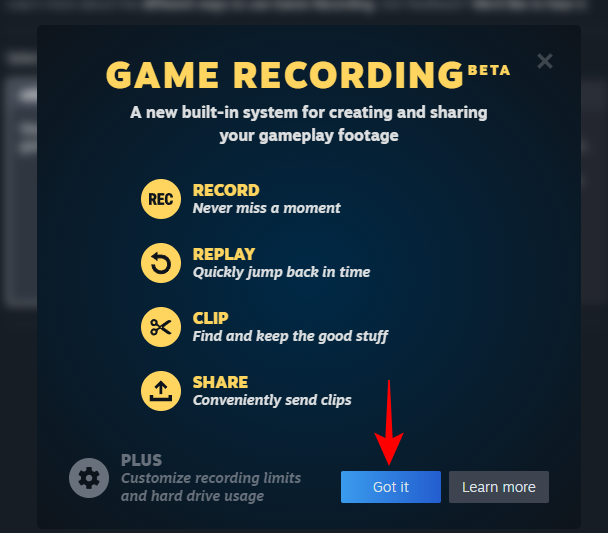 - Click Got it when greeted with the ‘Game Recording’ welcome message.