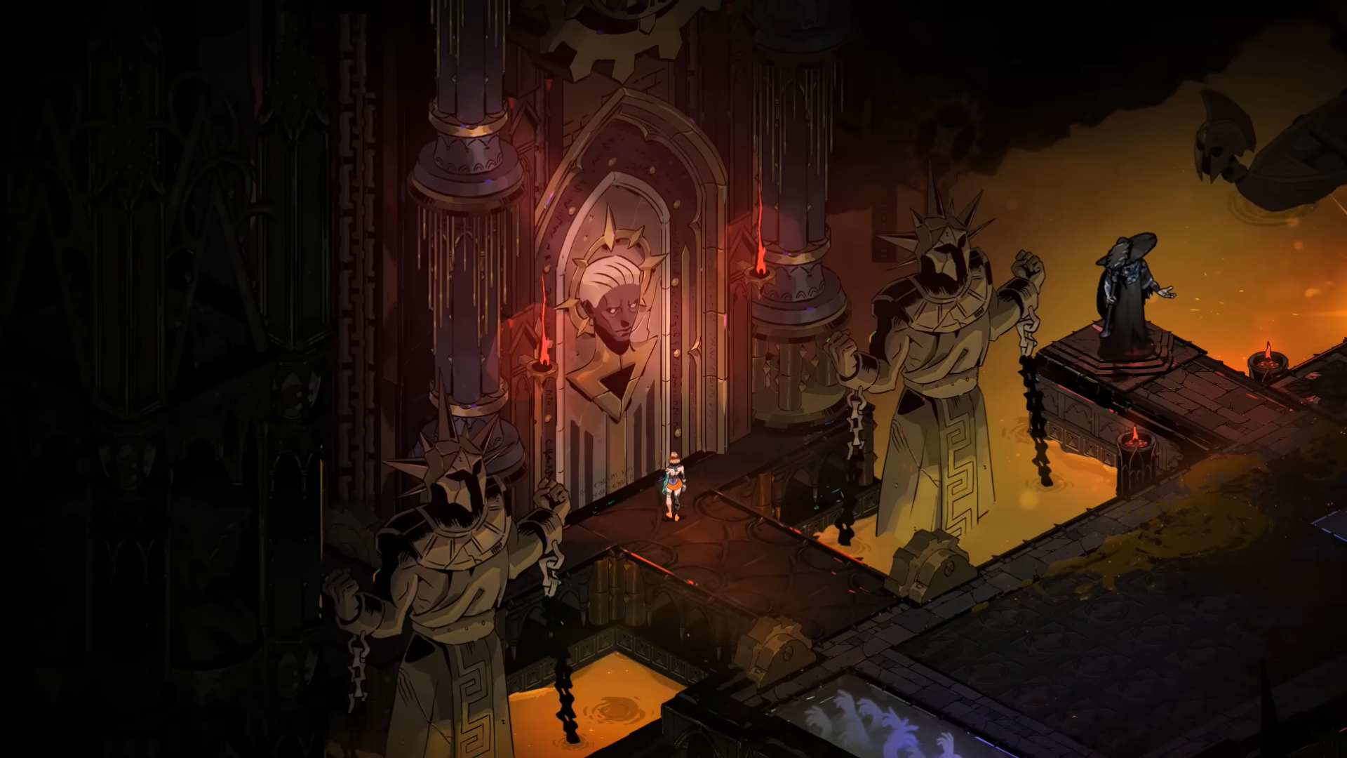 Regularly speak and gift key items (Nectar, Ambrosia) to Chaos, Chronos, Hecate, Prometheus, Heracles, Hermes, and Charon to trigger required conversations.