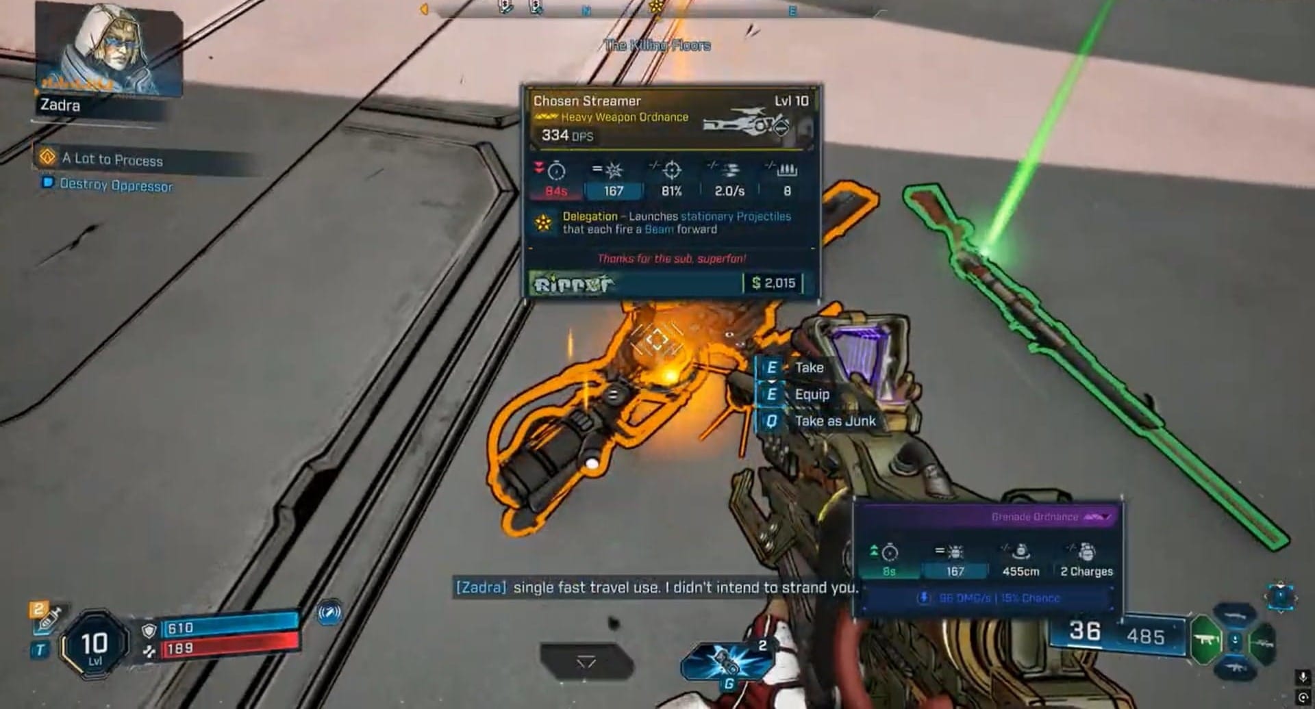 Unlock the nearest fast travel point—usually the safehouse—for quick farming sessions. In progression with the A Lot to Process mission, after Zadra's escape, you will find the Opressor at the roof of the Killing Floors.