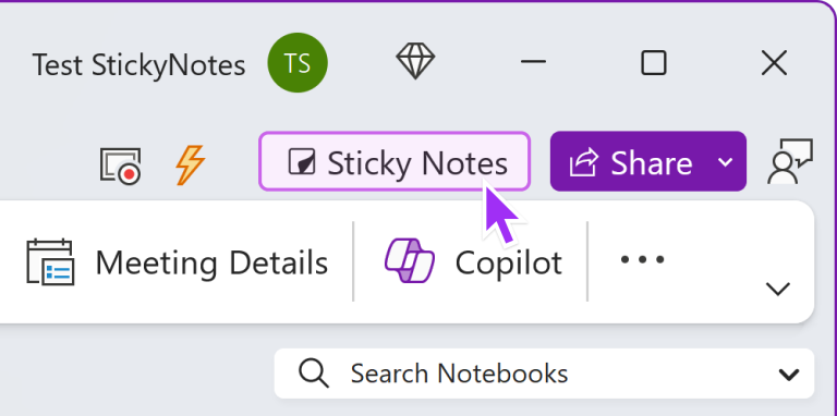 • Currently, Sticky Notes is available only to Microsoft 365 preview users (Current Channel), from within the OneNote app.