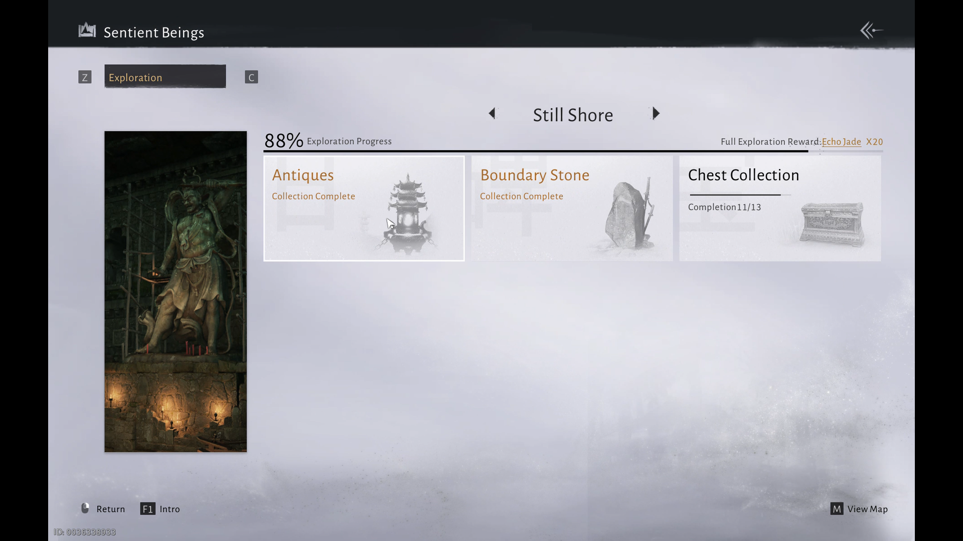 After collecting both the Warding Chest Armor and the Water Lady Crown, the Still Shore Antique category will show as completed in the Sentient Beings menu.