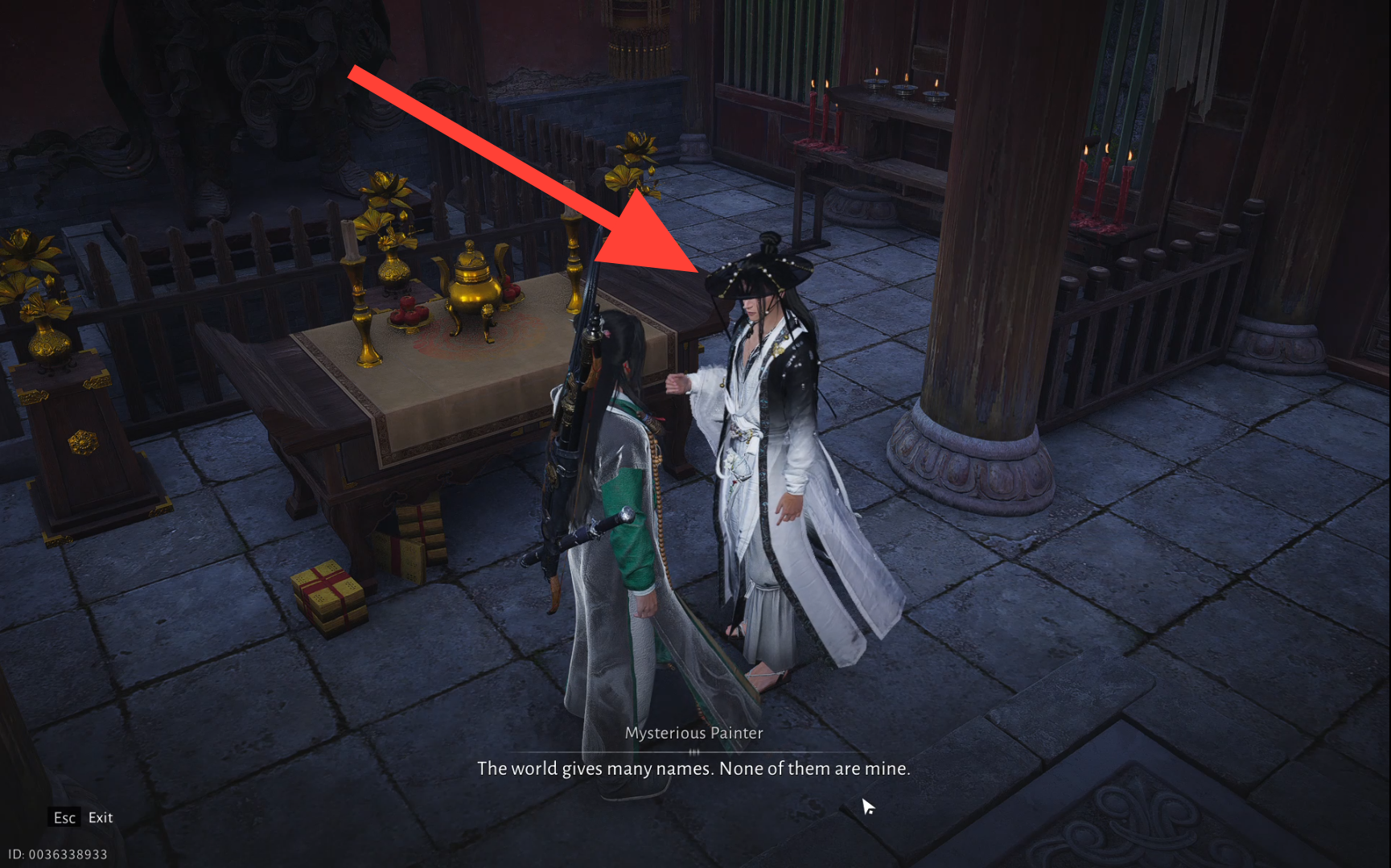 To start this Wandering Tale, head to the marked location in Martial Temple and head inside to speak with the Mysterious Painter.