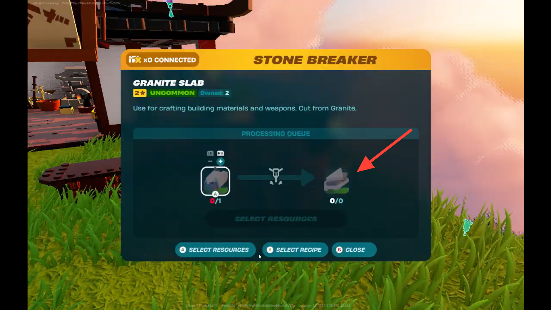 Submit items like granite, marble, and sand to get granite slabs, marble slabs, and sandstone, respectively. These slabs are used in further building rune forge, stations, and etc.
