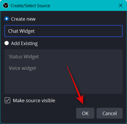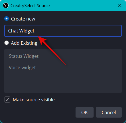 To add the Chat Widget to your stream setup in OBS, click and switch to the CHAT WIDGET at the top.