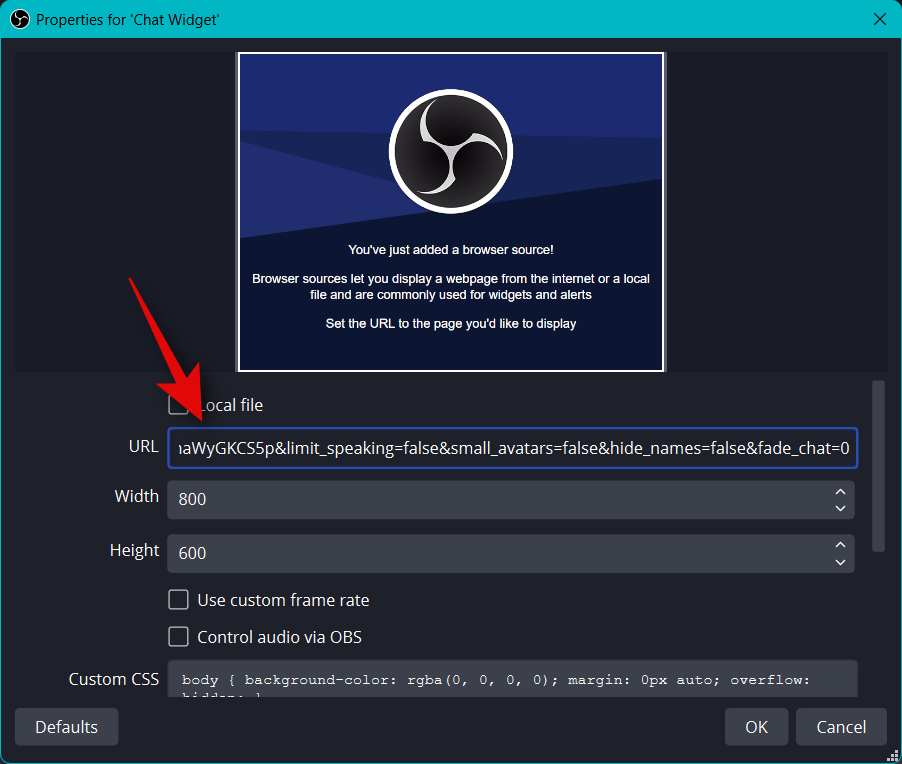 And that’s it! You will now have added the Chat widget to your stream in OBS.