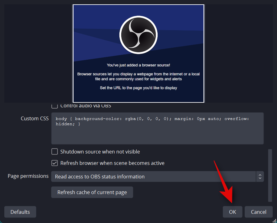 Now switch back to the browser window, and you can now customize and add widgets to your OBS setup. Follow one of the sections below depending on the widget you wish to add to your stream. You can choose to add multiple widgets as well.