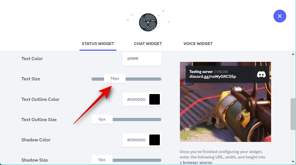 Use the slider for Text Size to adjust the size of the text in your widget. This will, however, only control the size of your server name and the users, online count.