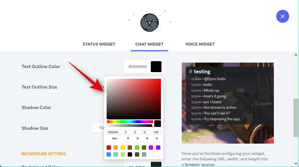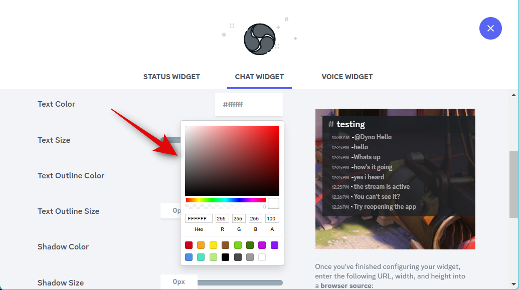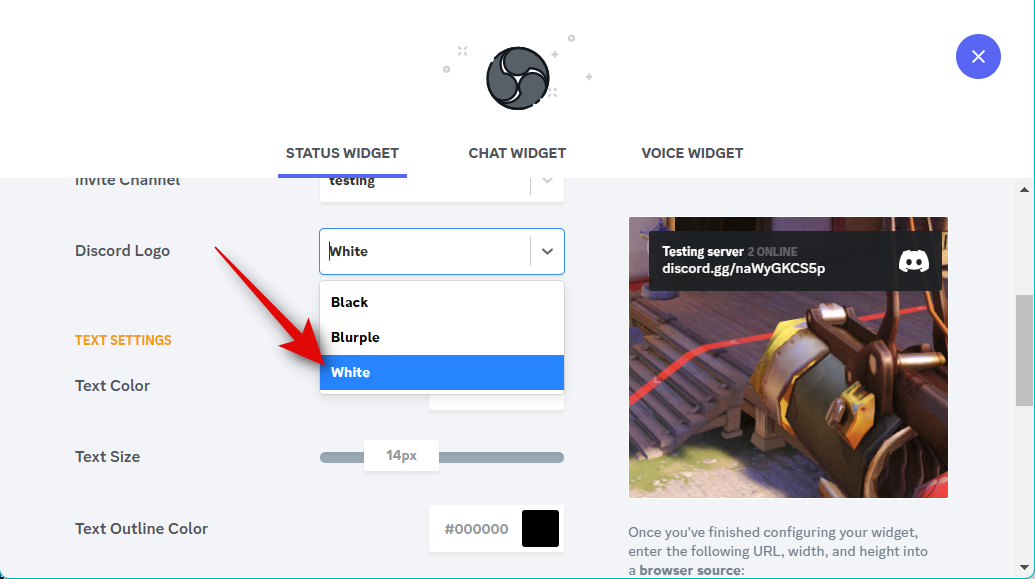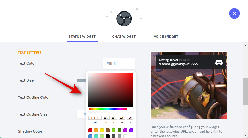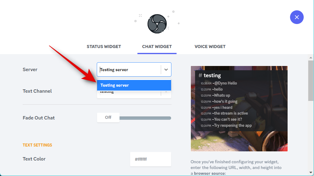 If you’ve added a Status widget, your color preferences will automatically be carried over to the Chat Widget. Click the drop-down menu for Server and choose the server for which you wish to display the chat in your stream.