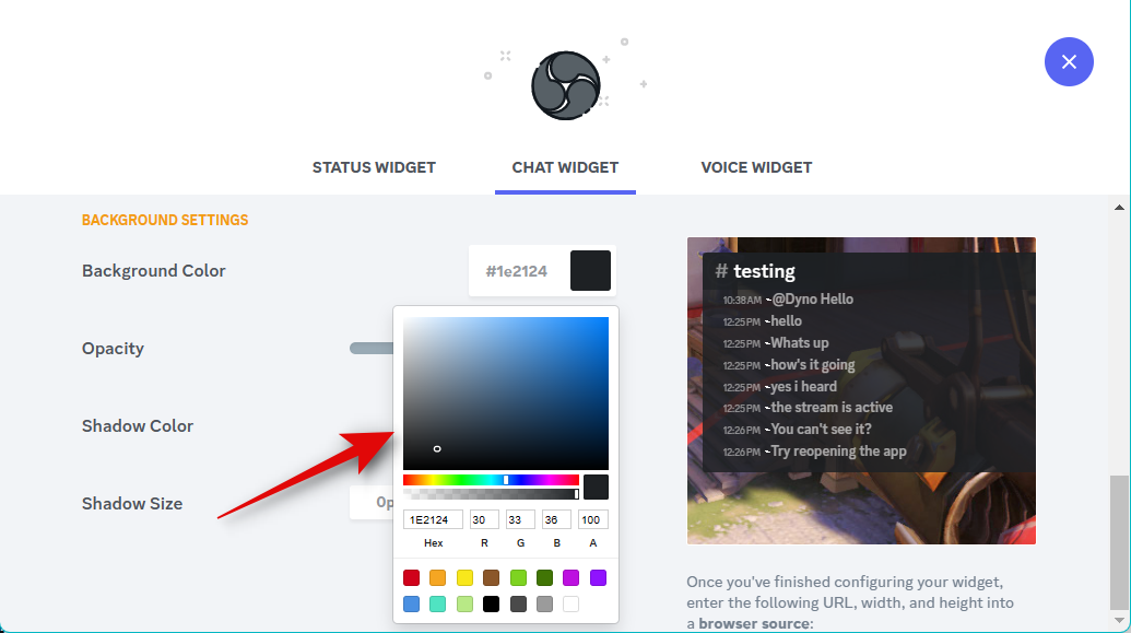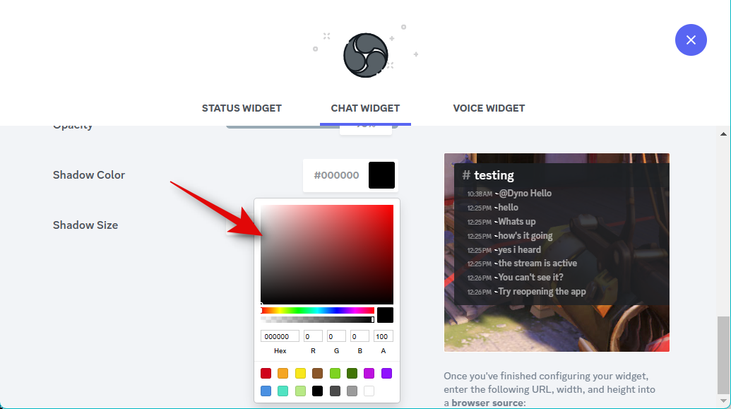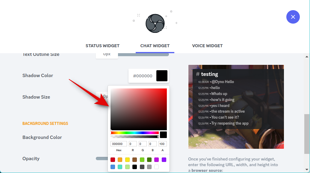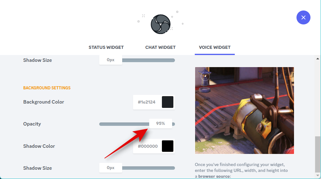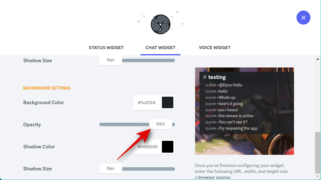 Now use the slider for Opacity to adjust the widget’s transparency. This can come in handy if you wish to display the widget over your source content, like a game feed or a video.