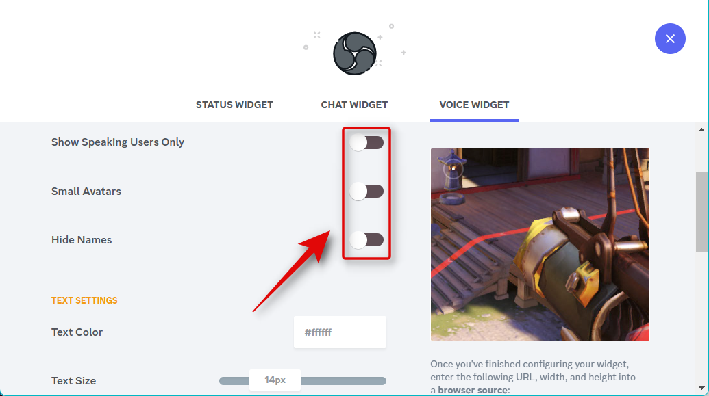 And that’s it! You will now have added the Voice Widget for your Discord voice channel in your OBS setup.