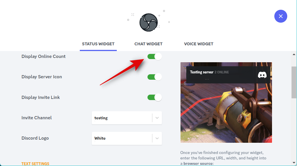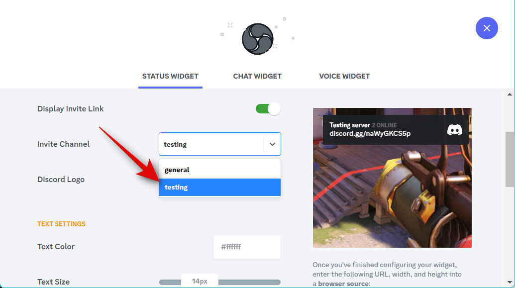 Now click the drop-down menu for Text Channel and choose the preferred channel whose chat you wish to display.