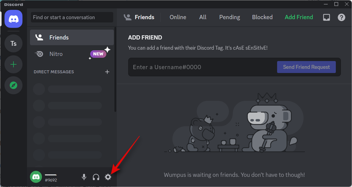Now open the Discord app and click the Gear (Settings) icon beside your username in the bottom left corner.